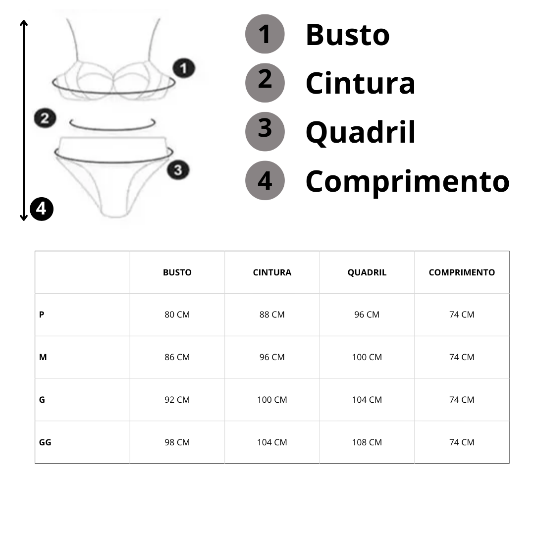 Material: tecido canelado com composição que alia elasticidade e conforto.